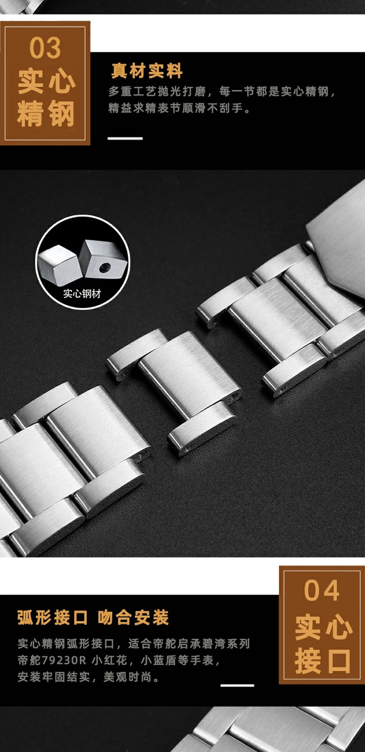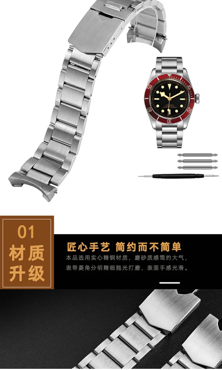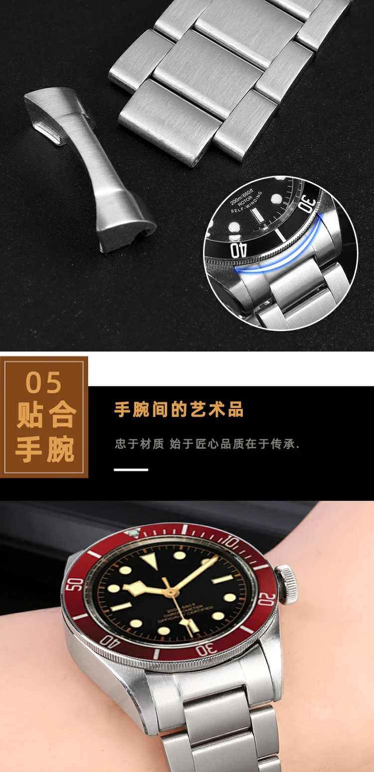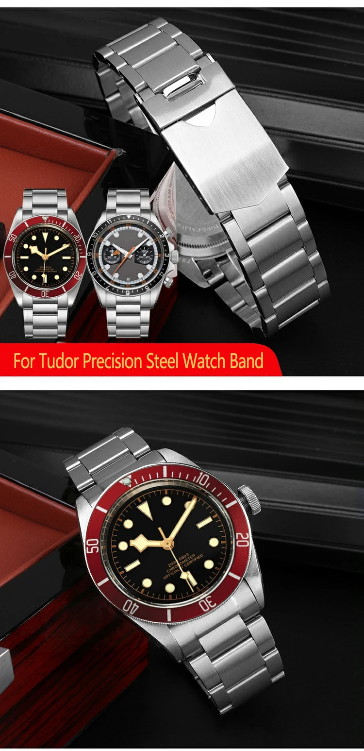 Bracelet For Tudor Byfjord Qicheng Watchband Small Red Flower Solid Steel Watch Strap With Arc Mouth Steel Watch Chain 22mm Gold