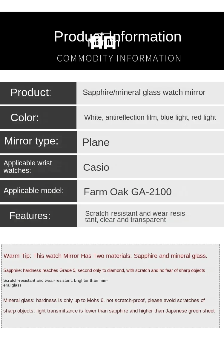 For Casio GA2100 GAB2100 GA-2100 GA-B2100 Watch Mineral Flat glass Crystal Sapphire glass mask lens Men repair parts accessories