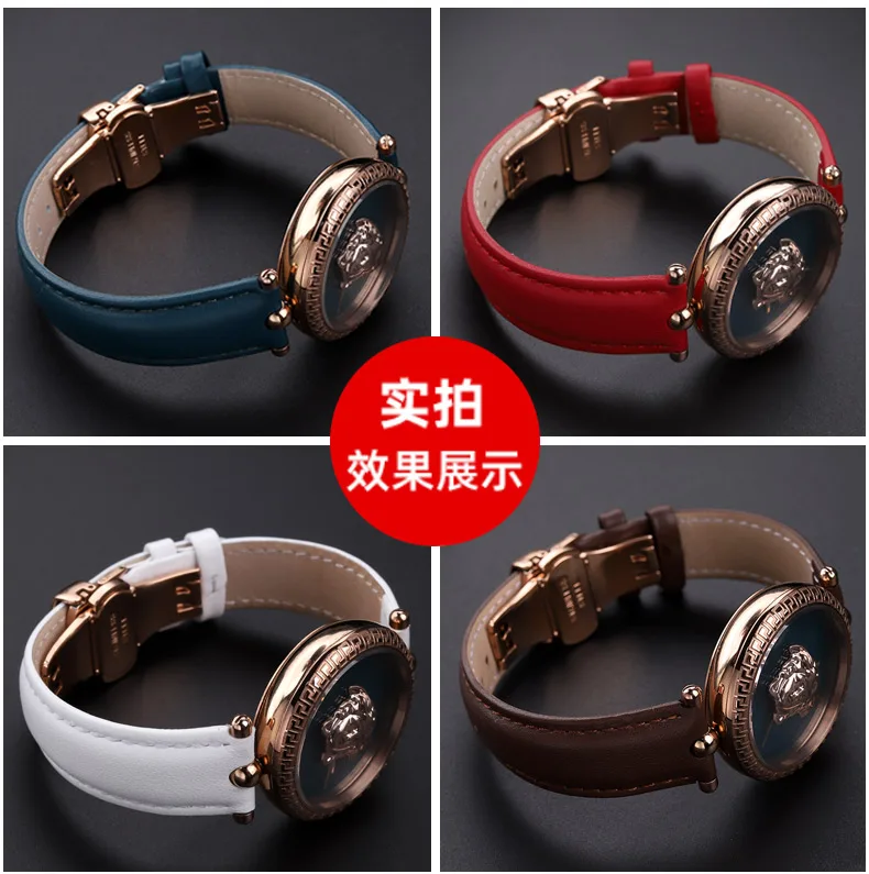 For VERSACE PALAZO Wristband Medusa Notched Genuine Leather Watch Band 18MM Women's Watch Strap VECQ00418/00118 Ladies Bracelet